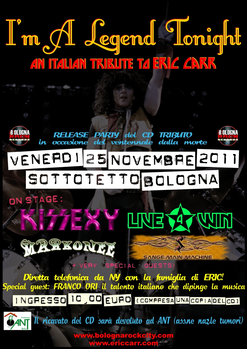 Bologna Rock City Records è lietà di annunciare tutti i dettagli sul cd tributo ad ERIC CARR a ventanni dalla sua morte. Al cd hanno partecipato 14 band più una all star band in rappresentanza del KISS WEB Italia. BRC vuole innanzitutto ringraziare tutti coloro che hanno partecipato con passione e professionalità a questo importante progetto.