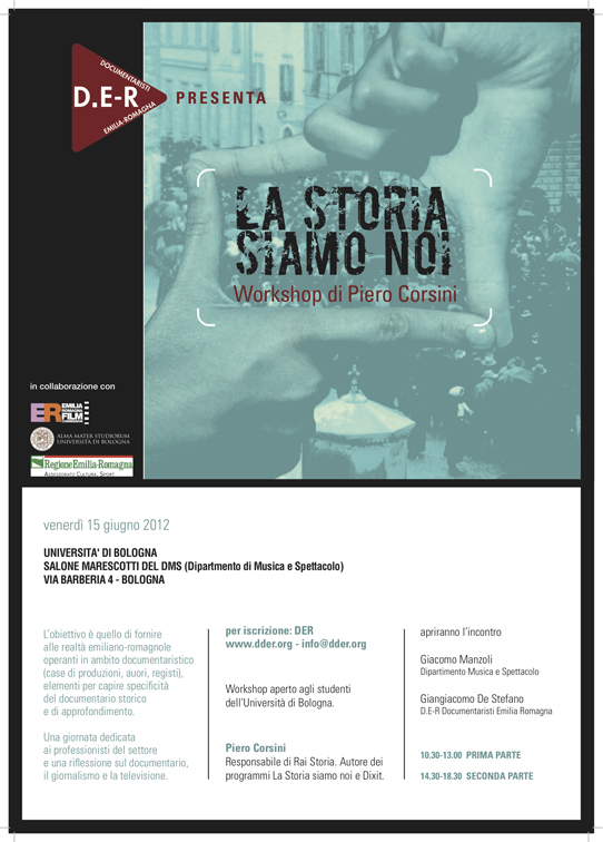 La Storia Siamo noi, si svolgerà presso il Salone Marescotti del DMS (Dipartimento di Musica e Spettacolo) dell’Università di Bologna.