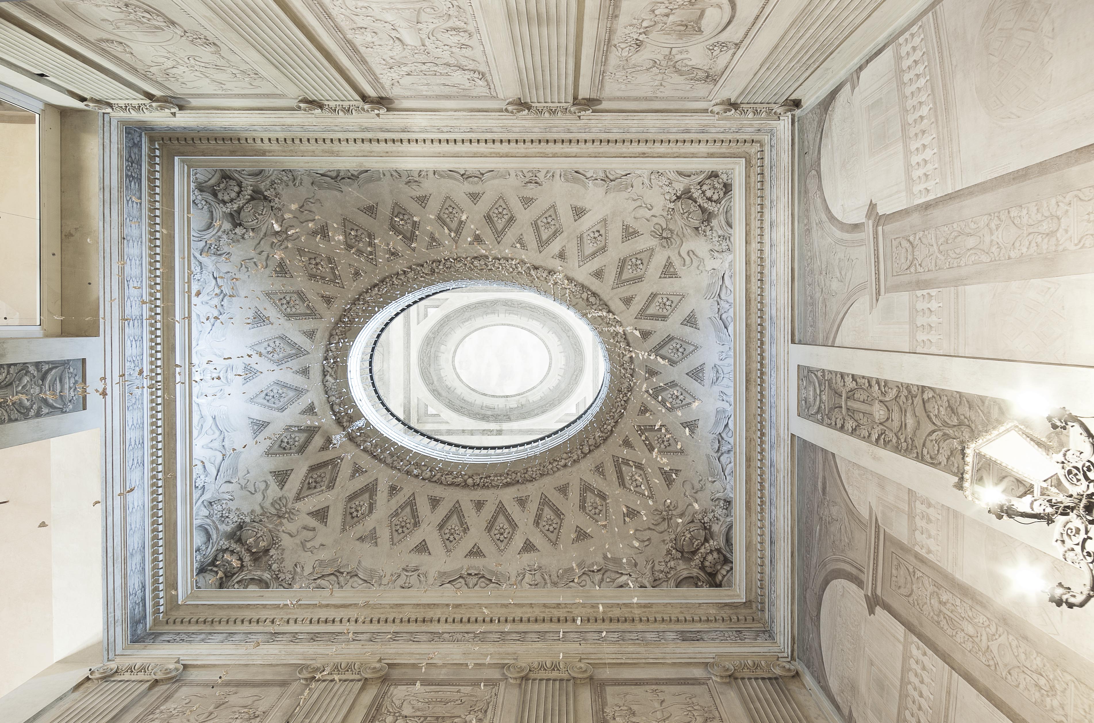Il metodo di lavoro utilizzato da Antonio Cesari è stato scandito in diversi momenti: per prima cosa ha utilizzato i più svariati appoggi per fissare la macchina (una “vecchia” digitale con un buon grandangolo) – scalini, panche, sedie, basi di pilastri e colonne; poi ha allineato macchina e soffitti utilizzando l’ordine geometrico delle panche, l’ortogonalità dei pavimenti e i gradini squadrati, «non quelli settecenteschi che hanno posto diversi problemi, come pure i pavimenti “seminati” e privi di geometrie ortogonali». (Antonio Cesari)