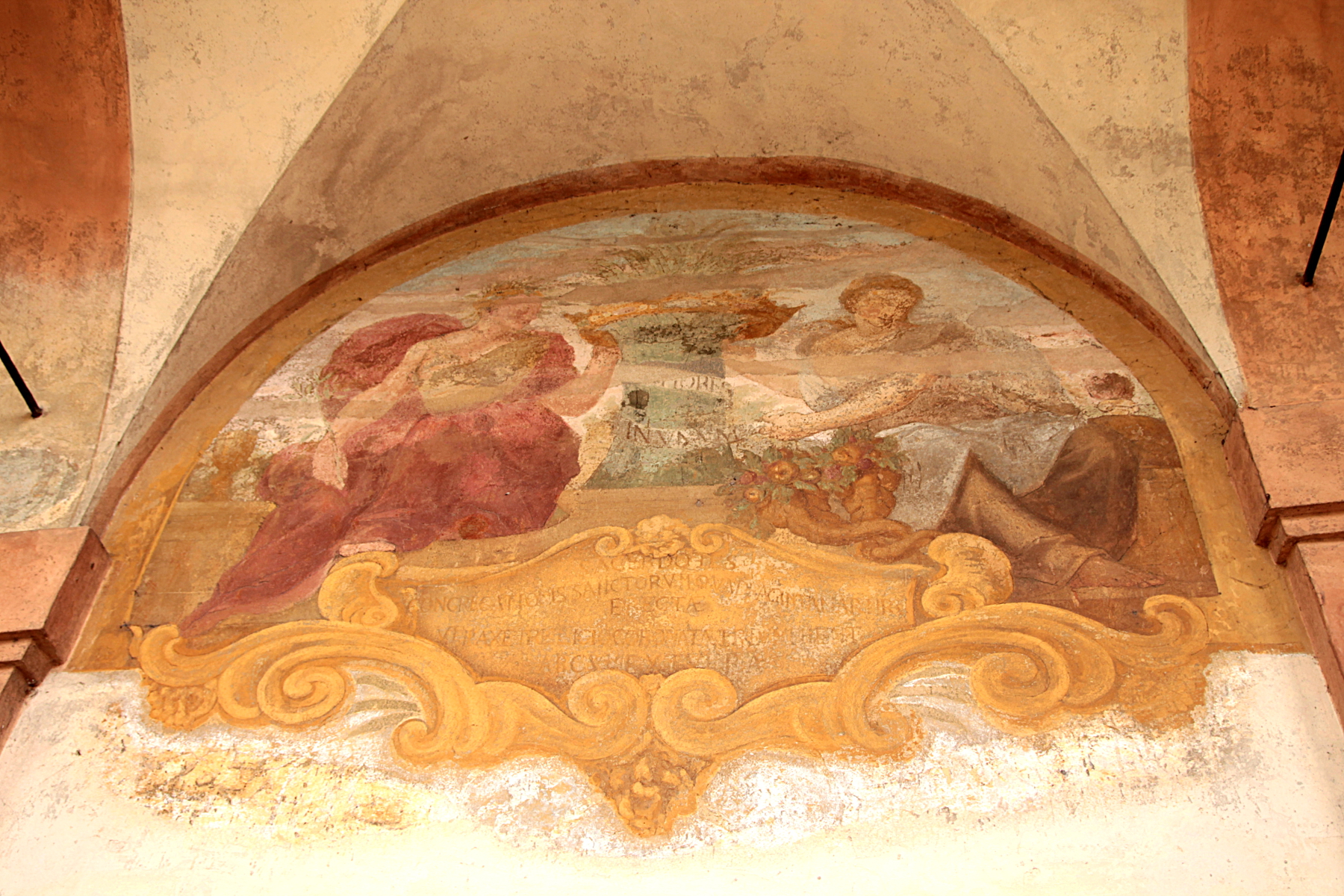 pitture murarie che decorano le arcate del portico di San Luca;