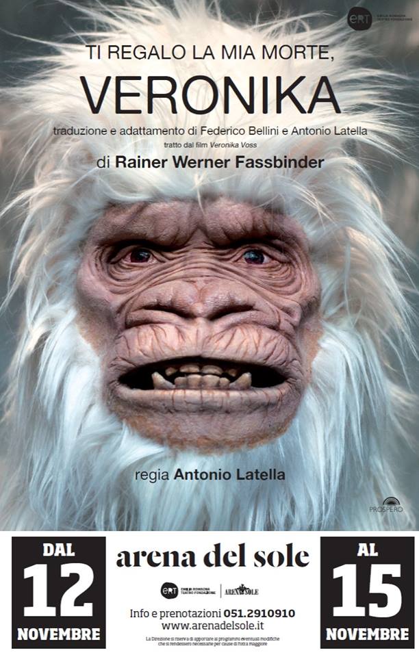 Partendo dalla rievocazione di Veronica Voss, ultima tra le protagoniste dell’autore bavarese, lo spettacolo incontra alcune tra le figure femminili grazie alle quali Fassbinder ha consegnato forse una grande, unica opera in cui sguardo cinematografico e biografia personale tendono inevitabilmente a coincidere. Una corsa folle, senza protezioni, una prolungata allucinazione dove realtà e finzione diventano quasi indistinguibili. Entriamo così nella mente di Veronika, diva sul viale del tramonto e vittima della morfina somministrata da medici senza scrupoli, dove i ricordi e i personaggi rievocati diventano apparizioni in bianco e nero, il nero come forma perfetta che fagocita gli altri colori e il bianco della purezza ma anche del lutto. E, inevitabilmente, il bianco della morfina che trasforma le memorie in gratificazioni, deforma ogni percezione fino a rendere accettabile la morte come possibilità, o liberazione. Un viaggio in cui Veronika e le altre eroine del cinema fassbinderiano regalano il proprio sacrificio al loro ideatore, il regista, il medico ma anche il carnefice Fassbinder, a sua volta, probabilmente, personaggio del suo stesso dramma.