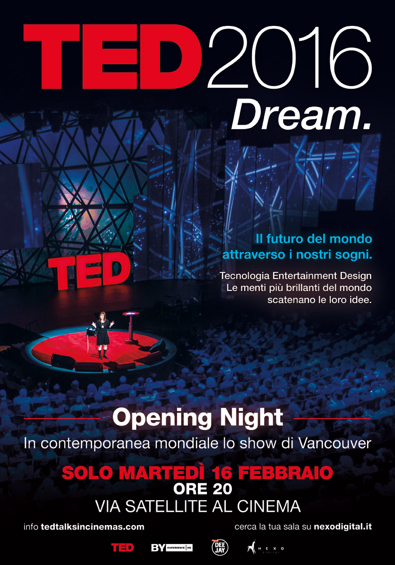 Ted 2016. DREAM. Opening Night è distribuito nei cinema italiani da Nexo Digital in collaborazione con Radio DEEJAY.
