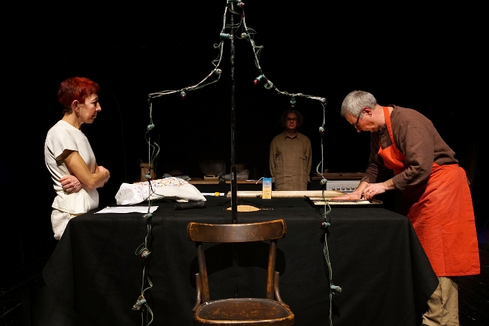 ‹‹Tutto quello che so può essere niente – scrivono le Ariette – E il grano? Alle soglie dei sessant’anni, qualcosa devi pure avere imparato, qualcosa devi sapere, e questo qualcosa non puoi tenerlo per te, perché fai teatro, perché sei un’attrice…“Tutto quello che so del grano” è una sorta di pausa, una meditazione collettiva su quello che sappiamo di noi stessi, dei nostri simili e della terra che abitiamo. Quel “sapere” che cerchiamo, che vogliamo ascoltare e raccontare, non è solo un sapere scientifico. Cerchiamo piuttosto di condividere un sapere intuitivo e sentimentale, che appartiene al campo dell’esperienza materiale: i ricordi, le emozioni, i sentimenti, la farina, l’acqua, il pane e il vino››.