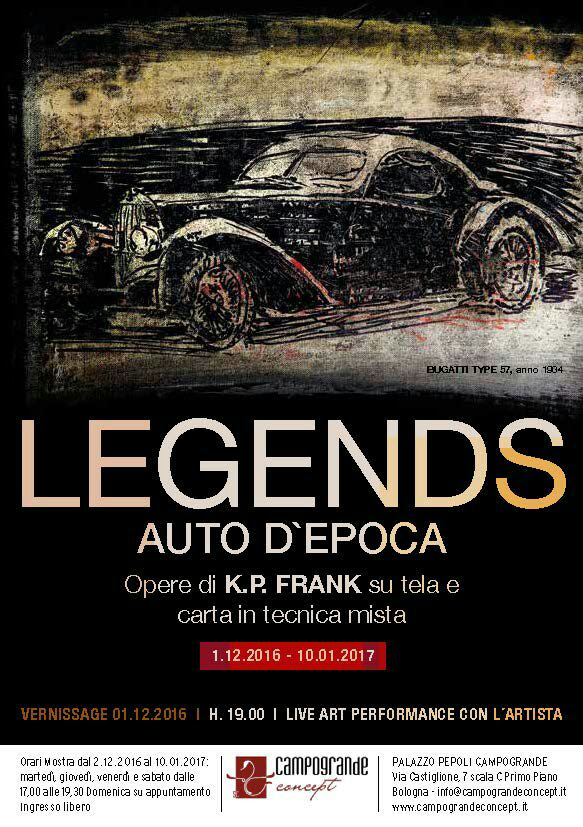 Campogrande Concept è orgogliosa di presentare in ANTEPRIMA NAZIONALE ,in occasione del Motor Show di Bologna, la pittura e i disegni di K.P. Frank Legends – Auto d’epoca