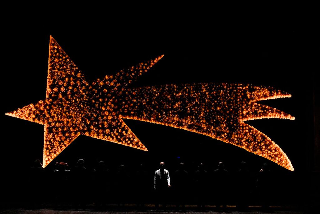 Il Presepe è corpo, voce, parola, sguardo, è l’animale chiuso in ogni personaggio, è il dono che ogni personaggio porta al suo Creatore. «La stella cometa non porta nessuna buona notizia, non mi interessano i buoni sentimenti – annota Antonio Latella – Luca Cupiello insegue la stella come le pale di un mulino a vento. Lievita in assenza di concretezza e si riduce a un dolore fasciato di pelle e ossa; un pater fuori ruolo che parla un’altra lingua e si muove in un altro modo. La stella cometa illumina un presepe dietro il quale abbiamo messo tutto quello che non vogliamo vedere o che non vogliamo accettare, mentre arrivano le feste. La famiglia e le sue relazioni interne. La casa e gli equilibri che governa. Il carrozzone da trainare per un’altra ‘madre coraggio’. Quello che i genitori vogliono e quello che i figli fanno, le aspirazioni degli uni e la libertà degli altri, come si dovrebbe essere e come si vuole apparire. Vuoti di senso sempre più difficili da colmare che diventano risacche di risentimento, odio, perbenismo formale diventato un abito troppo stretto per emozioni e sentimenti. E poi i parenti, i vicini, gli altri. Le generazioni si avvicendano e sono portatrici di valori diversi, distanti, inconciliabili, dagli esiti imprevedibili. Sguardi pronti a diventare giudizi e a indurci in comportamenti che qualcuno ha assunto come adeguati. Tutti sono immersi in un rituale funebre di interessi e di apparenze. Tutti sono schiavi di un dedalo di aspettative scontate, immobili come i personaggi del presepe, ma qui non ci sono nascite in vista».