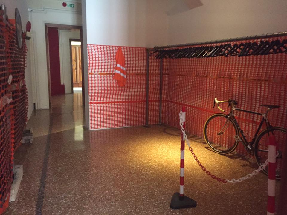 Un momento siamo dentro una mostra, e quello dopo stiamo pedalando verso le colline, levandoci in piedi per pigiare con più energia sui pedali. Eppure non abbiamo lasciato Palazzo Belloni. Siamo su una Gooble bike, fornita da Wayel ElectricBikes, inserita in un home trainer e dotata di un display, secondo un progetto sviluppato da professori e studenti dell’Istituto tecnico Oddone Belluzzi di Bologna, vincitore del primo premio alla Marker Fair di Roma nel 2013.