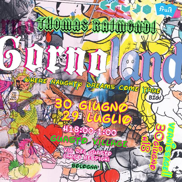 GORNOLAND è un progetto di “vandalismo visivo” ideato e presentato per la prima volta nel 2012 dall’artista, grafico e illustratore Thomas Raimondi, il cui titolo è un neologismo sincratico tra PORNO, ovvero il sesso esplicito rappresentato, GORE, genere cinematografico che propone scene particolarmente efferate e violente e DISNEYLAND, il parco di divertimenti a tema, famoso in tutto il mondo.