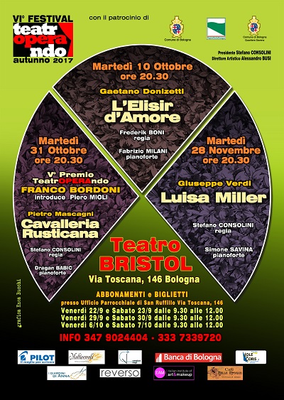 Martedì 31 Ottobre 2017 ore 20:30 CAVALLERIA RUSTICANA di P. Mascagni. Nella prima parte della serata sarà consegnato il V Premio Teatroperando al celebre Baritono Bolognese Franco Bordoni, introduce il Prof. Piero Mioli.