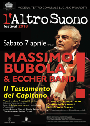 Massimo Bubola, nome di culto e figura centrale della musica d’autore italiana, è poeta, musicista e scrittore. Ha al suo attivo venti album che tracciano un percorso unico nella letteratura musicale del nostro Paese. Già alla fine degli anni Settanta, Bubola crea una poetica che si ispira alla tradizione della musica popolare e alla poesia contemporanea, arrivando a maturare una formula musicale ricca di suggestioni letterarie, che influenzerà la scena italiana a cominciare da Fabrizio De André (con cui scrive successi come Fiume Sand Creek, Hotel Supramonte, Franziska, Don Raffaè) e Fiorella Mannoia (interprete del suo Il cielo d’Irlanda). Lo spettacolo Il Testamento del Capitano, nato nel 2014, è dedicato al centenario della Grande Guerra, e affiancherà all’esecuzione musicale (con brani originali e canzoni riarrangiate dal repertorio popolare tradizionale) interventi sulla memoria storica del conflitto e letture dal romanzo di Bubola Ballata senza nome, uscito per Frassinelli a ottobre 2017.