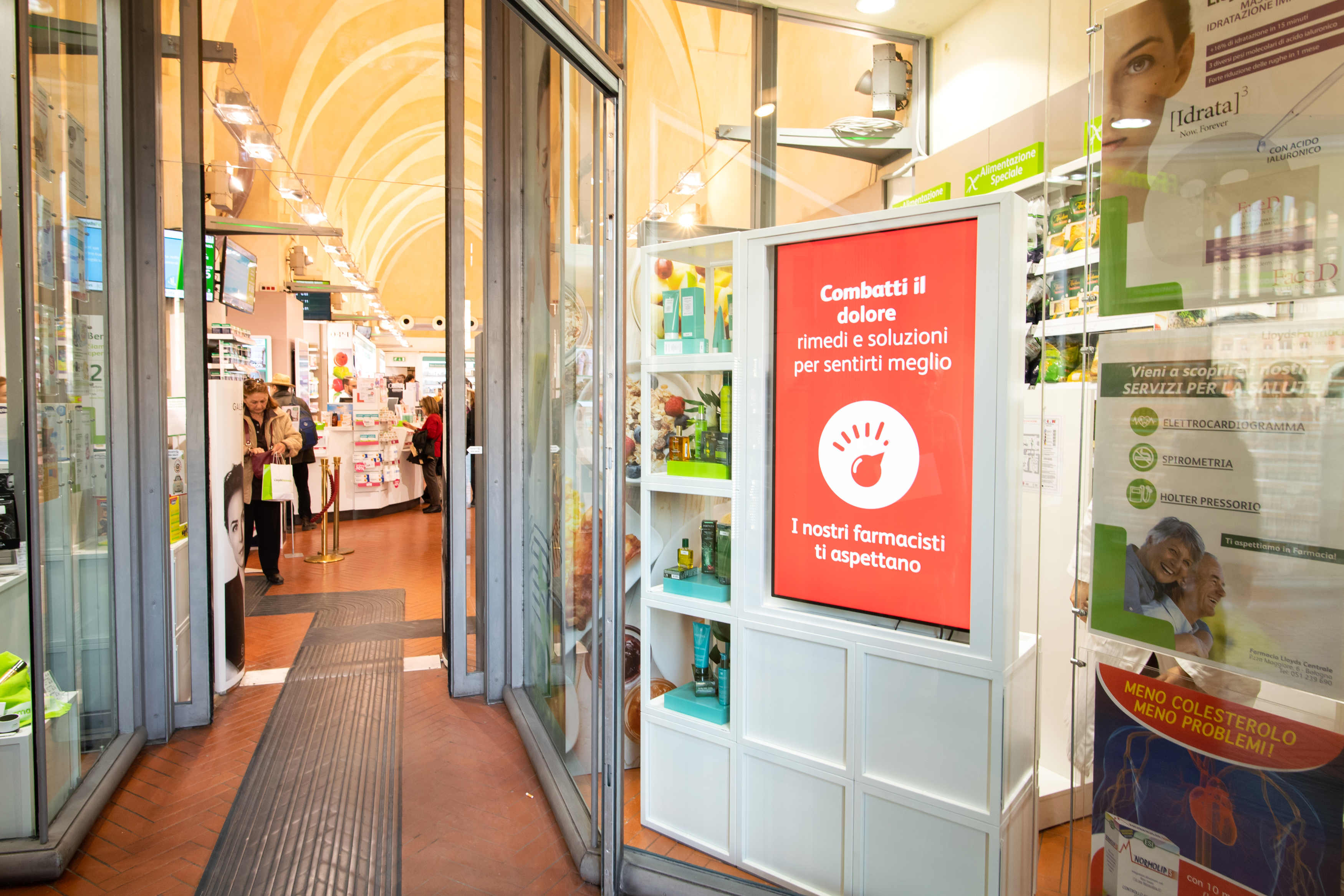 Di nuova introduzione in Centrale gli innovativi ‘scaffali virtuali’, che consentono una più efficace visualizzazione e richiesta dei prodotti in farmacia. In Farmacia Centrale sono infatti oltre 20.000 le referenze proposte al pubblico, capaci di coprire le più svariate esigenze, e decine gli esami e servizi di prevenzione, dall’elettrocardiogramma, alle intolleranze alimentari, alle consulenze nutrizionali, ai controlli della pelle e del dolore (da sempre al centro del modello LloydsFarmacia) e molti altri tra cui, di nuova introduzione, test su sensibilità al nichel e vendita del kit per test rapido domiciliare che consente la valutazione della funzionalità tiroidea attraverso la misurazione della concentrazione del TSH.