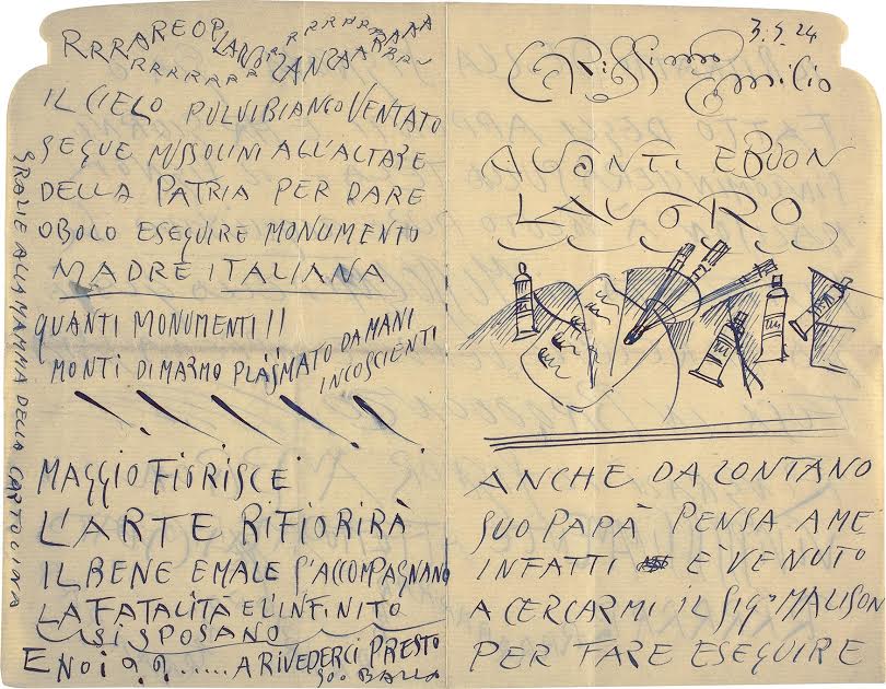 Giacomo Balla, lettera alla famiglia Ambron, 1924, Bologna, Raccolta Lercaro
