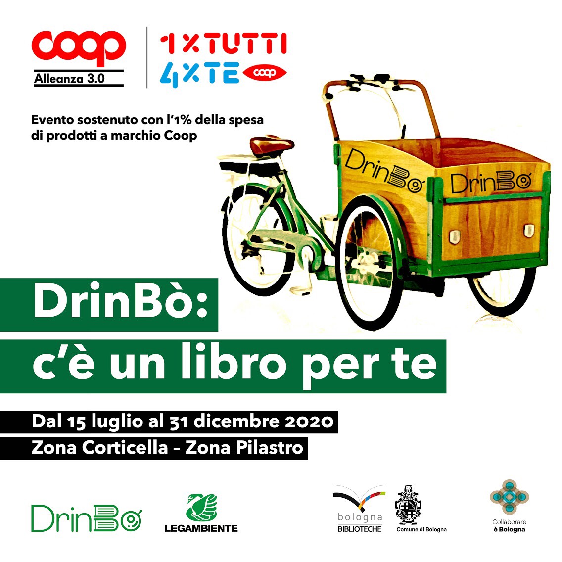 Le prime consegne di DrinBò saranno effettuate giovedì 23 luglio dalla Biblioteca Corticella Luigi Fabbri e lunedì 27 luglio dalla biblioteca Luigi Spina del Pilastro. Si tratta di una prima fase sperimentale del progetto che prevede una consegna alla settimana – il giovedì a Corticella e il lunedì al Pilastro – e che, dopo l’estate se gradito dagli utenti, proseguirà con più continuità fino ad autunno inoltrato.