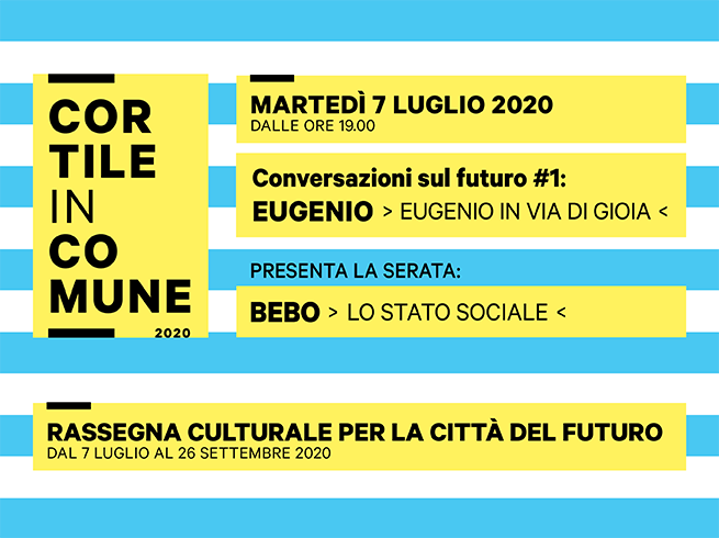 Il primo appuntamento è con Conversazioni sul futuro #1: Eugenio, un talk informale che inaugura un ciclo di incontri condotti e co-curati da Alberto Bebo Guidetti (Lo Stato Sociale) che chiamerà di volta in volta diversi colleghi musicisti a confrontarsi su temi come tutela dell’ambiente, sessualità, consumo di droghe, social e nuove tecnologie, meticciato e nuove generazioni.