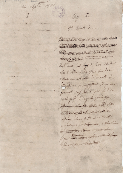immagine della prima carta dei Promessi sposi, dove c’è la data del 24 aprile 1821