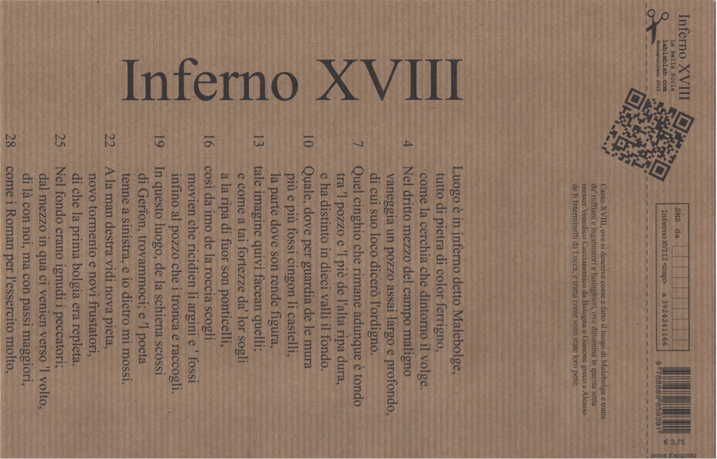 I partecipanti (dal vivo!) riceveranno il gobbo di Inferno XVIII, stampato a caratteri grandi, per seguire sul testo le spiegazioni e poi continuare a leggere a voce alta il canto dalle pareti di casa, imparandolo così a memoria. Come si faceva ai tempi di Dante… senza, è un po’ come credere di conoscere un film per averne visto un fotogramma stampato.In collaborazione con La Bella Scola editore.