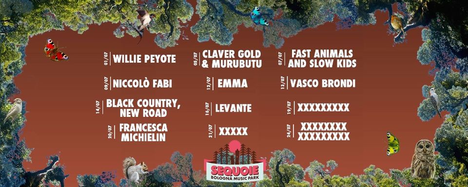 Una rassegna di concerti che spazia in ogni genere musicale. Vede infatti alcuni dei nomi più interessanti della scena rap italiana, Willie Peyote (1/07), torinese che ha conquistato il grande pubblico dopo l’ultima edizione del Festival di Sanremo e Claver Gold e Murutubu (05/07) che presenteranno il loro ultimo progetto ‘Infernvm’, uscito in occasione delle celebrazioni dell’anno dantesco. Sequoie Music Park prosegue poi con il rock dei Fast Animals and Slow Kids (07/07) che ripercorreranno i dieci anni di carriera, da ‘Cavalli’ a ‘Cosa ci direbbe’ e l’immenso Niccolò Fabi (09/07) per la data bolognese del suo tour estivo. Il palco del Parco delle Caserme Rosse verrà poi calcato da Emma Marrone (12/07) che farà tappa nel capoluogo emiliano per il suo ‘Fortuna’ tour. I giorni seguenti saranno il contenitore per Express Festival: il cantautore/poeta nostrano Vasco Brondi (13/07) ci ammalierà con il suo nuovo album “Paesaggio Dopo la Battaglia” e i giovani Black Country, New Road (14/07) band di Cambridge ci stupiranno con il loro innovativo avant-jazz post-punk.