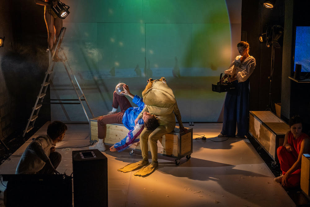 Nelle questioni entra anche il ruolo dell’attore, che qui Leta Popescu trasforma dando agli interpreti anche il ruolo dei tecnici: ma, si chiede la regista, “se l’attore assume queste funzioni, allora come si comporta il personaggio con un riflettore in mano? Anche se le cose sembrano semplici, la sovrapposizione di questi piani diventa molto complicata sul palco. Ed è delizioso per me far parte di una bizzarra sovrapposizione di piani”.