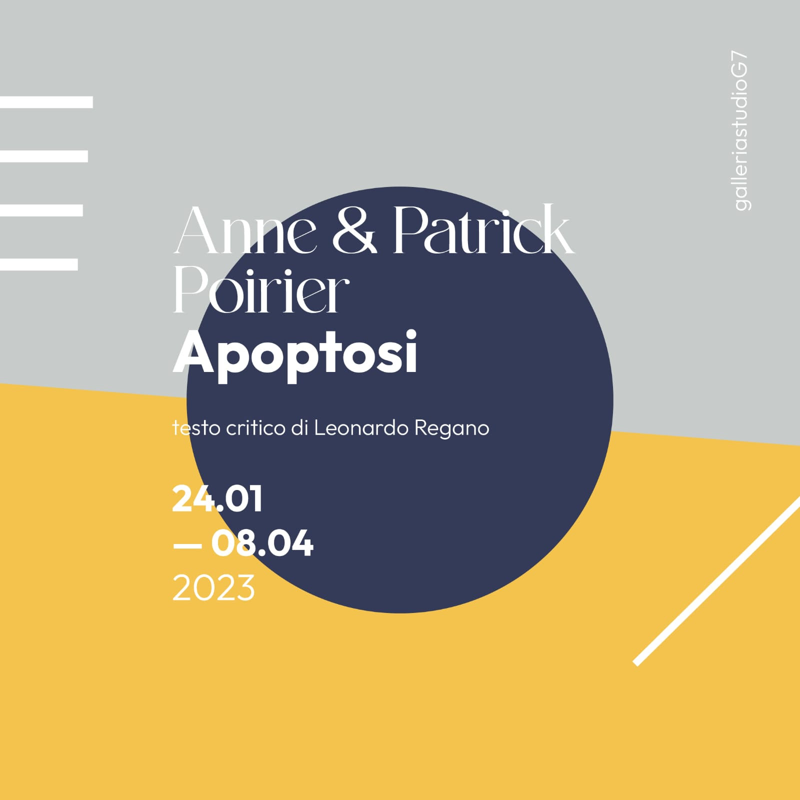 Studio G7 presenta Apoptosi, nona mostra personale degli artisti Anne e Patrick Poirier accompagnata dal contributo critico di Leonardo Regano.