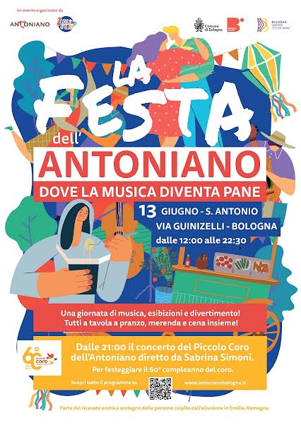 Martedì 13 giugno giornata dedicata a grandi e piccini con laboratori, stand gastronomici e concerto per i 60 anni del Piccolo Coro dell’Antoniano.Il ricavato a sostegno delle persone colpite dall’alluvione in Emilia-Romagna.
