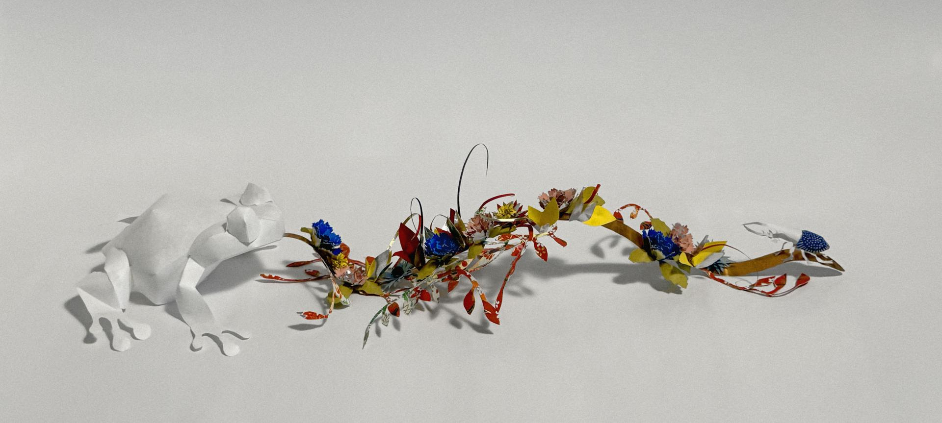 L’esposizione presenterà cinque suggestive istallazioni realizzate con materiali “poveri” facilmente manipolabili, come il legno naturale, la corda, il vetro, il velluto, il plexiglass, ma soprattutto la carta, elemento prediletto dall’artista perché in grado di donare delicatezza e levità alle sue opere. All’interno dello spazio, dal 16 maggio al 16 luglio 2024, i visitatori avranno l’opportunità di immergersi in un universo onirico, fluttuante e leggero, allestito curando ogni dettaglio con l’obiettivo di far emergere quell’idea di respiro tipica delle installazioni e sculture dell’artista, le quali si fondono con il mondo della flora e della fauna assumendo titoli che evocano un’atmosfera magica. Serena spiega: “Il pensiero dietro la mia ricerca è quello che ormai mi accompagna da diversi anni: mi piacerebbe creare nuovi modi di vedere i paesaggi familiari e pensare alle possibilità affinché il territorio e la natura ci vengano restituiti in forme diverse, attraverso gli elementi che prediligo e che uso nei miei lavori come la leggerezza, l’immaginazione aerea, l’aspetto ludico e onirico delle cose.”