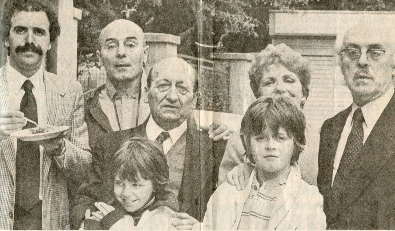 In foto: Nerio, zio Elio Nanni, il direttore storico Carmine Marchesi, nonna Alma, nonno Arnaldo il fondatore. Davanti Luca ed Andrea
