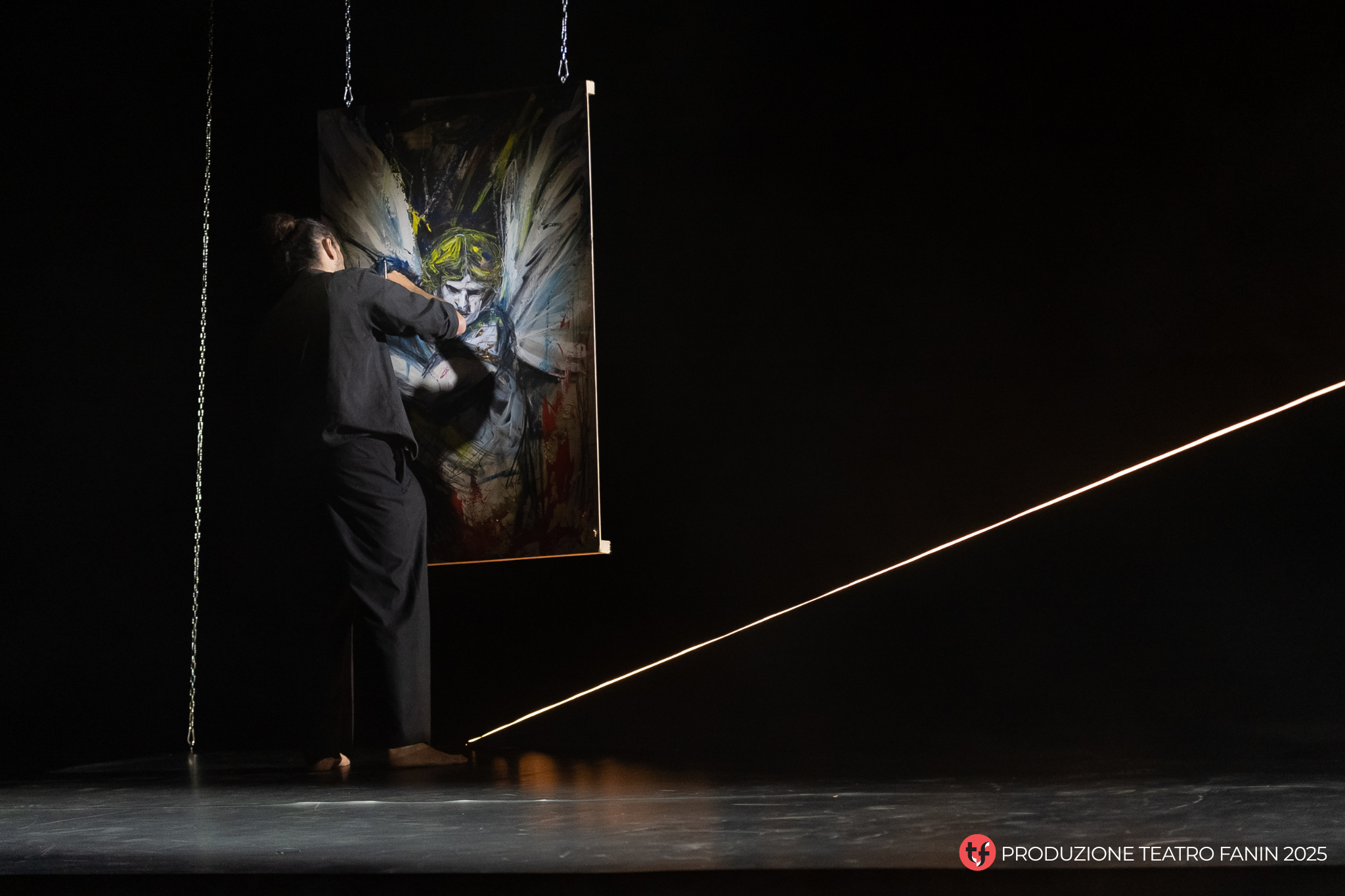“La tela risulta essere l’elemento predominante” spiega il regista Salvatore Sito, , “e i personaggi si muovono su di essa come a voler comporre un passo alla volta il disegno dell’autore, in un percorso che si sviluppa dall’espressionismo fino a un razionalismo di stampo contemporaneo“. Ogni atto è ispirato a grandi capolavori della pittura: dalla Madonna di Munch per il primo atto, alla Danae di Klimt per rappresentare la violenza del potere nel secondo, fino a Gli Amanti di Magritte per il drammatico epilogo.